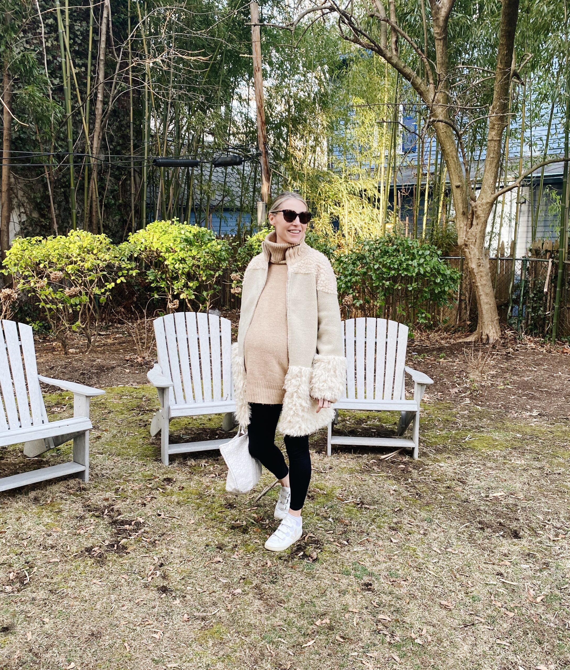 Jacket (on sale now); Sweater (old Zara but similar here); Leggings (best Amazon leggings ever); Shoes